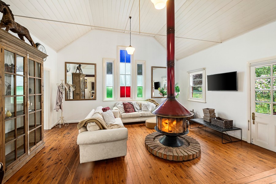 An enchanting old church built in 1939, showcasing original features and spiritual charm cleverly converted into a comfortable & quirky Southern Highlands residence.